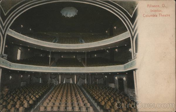 Front: Alliance, O. Interior, Columbia Theatre Back: THE HUGH C. LEIGHTON CO., MANUFACTURERS, PORTLAND, ME., U.S.A. 33301 MESSAGE MAY BE WRITTEN ON THIS SIDE. QUALITY and Island Possessions: Cuba, Canada and For Foreign.