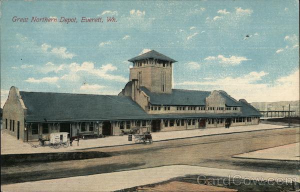 Front: Great Northern Depot, Everett, Wn. kend Back: Trattner Post Card Co., Seattle, Wn. No. 626 √² 15 24/15- AND CANADA, FOREIGN, Two CENTS. 2725