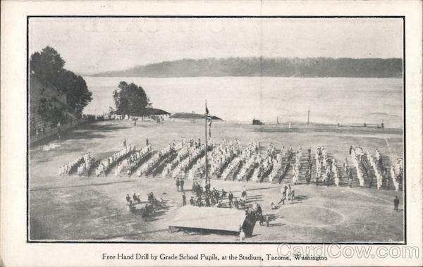Front: 201 SE Free Hand Drill by Grade School Pupils, at the Stadium, Tacoma, Washington Back: Published by Central News Co., 935 C Street cognides W amose Tibe2 sdt is aliqua loodbe sabas yd na bash 991²7