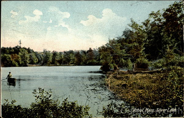 Front: Athol, Mass. Silver Lake. Back: FEB 2 1- M 09 19 MASS.9 THE HUGH C.LEIGHTON CO., MANUFACTURERS, PORTLAND, ME.,U.S.A.PRINTED IN FRANKFORT MAIN, GERMANY 5199. NI/ BRAHA 8 AM *19.9 Sarah Miss Ethel Morrey North Wilkaham прага