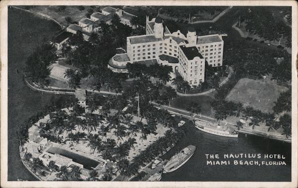 Front: 18 #1 16 THE NAUTILUS HOTEL MIAMI BEACH, FLORIDA Back: ONE CENT STAMP POST CARD Kromekote Post Cards—Distributors for Florida, Olympia Bldg., Miami, Fla.
