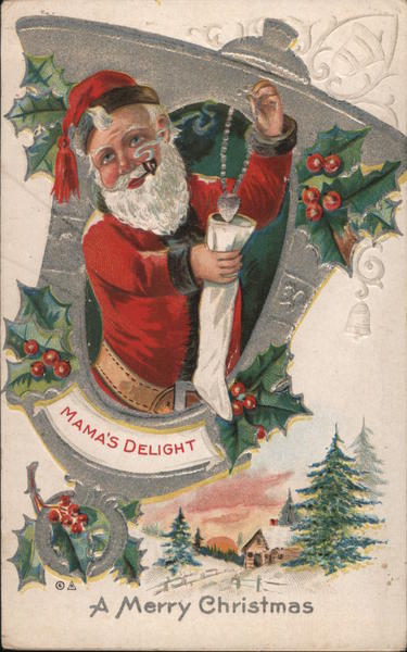 Front: MAMA'S DELIGHT ⒸA OPE 13 A Merry Christmas Back: CHRISTMAS DELIGHT SERIES 30000 гоп Grandma 00000 po ON THIS SIDE. Lourel lal COPYRIGHT 1910 BY A.JAEGER.