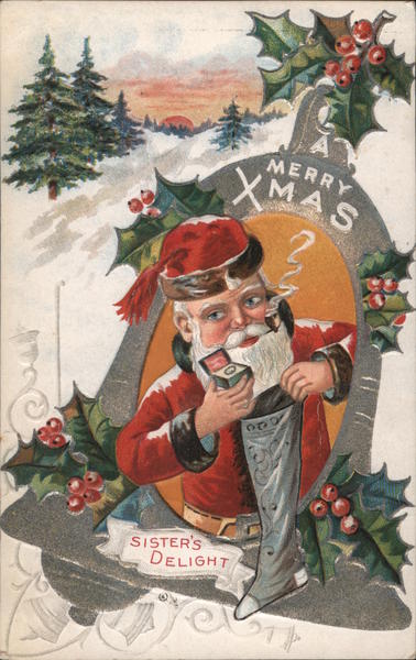 Front: SISTER'S DELIGHT MERRY MAS 000 # Back: CHRISTMAS DELIGHT SERIES 00000 Do 2AM 10000 ON THIS SIDE. COPYRIGHT 19.0 BY AJAEGER.
