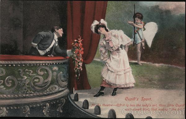 Front: Cupid's Sport. At the theatre-Oft it is less the lady's art, than little Cupid well-aimed dart, that makes" the hit." Back: Valentine's Series کے