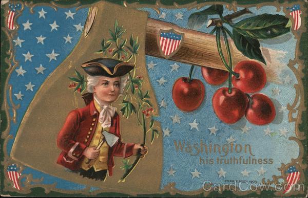 Front: his truthfulness COPRIE NASH 1909. Back: WASHINGTON BIRTHDAY SERIES NO.2 * POST CARD. 回回回回 7. Battenhall 回回向心回 ON THIS SIDE. LAKORNO Go Qutt & Birge Q. F-8. HIST Mise Vivian Bergen Chalham 7.4.