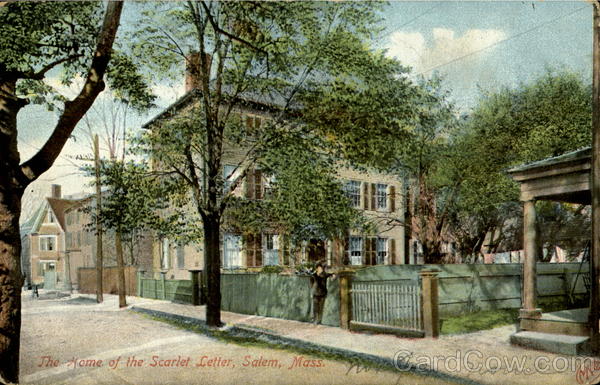 Front: The Home of the Scarlet Letter, Salem, Mass. CNe Back: No. 7885, Made in Germany. NOV 8 8-PM 1,00 19 MASS 07 1907 SS.RECO WEY STA 17 Miss Helen Jonny UNITENS ADOS DE 1706 FRANKLIN 1790 b hard St. East Wapnouth Me mass;