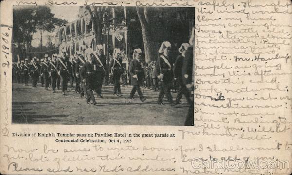 Division of Knights Templar passing Pavilion Hotel in the great parade at