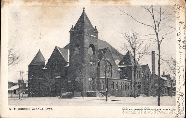 Front: M. E. CHURCH ALGONA, IOWA. EN AAN 11. 05 თეზე. PUB. BY TANNER SOUVENIR CO, NEW YORK alther au Back: POST CARS JAN 4 10AM ALCA بھی بو TAIT FRIEN 1902 D STATES OF 1706 FRANKLIN 1796 Ms. F.D. Rathbun), ви New Winder, que Illinois. 190 es