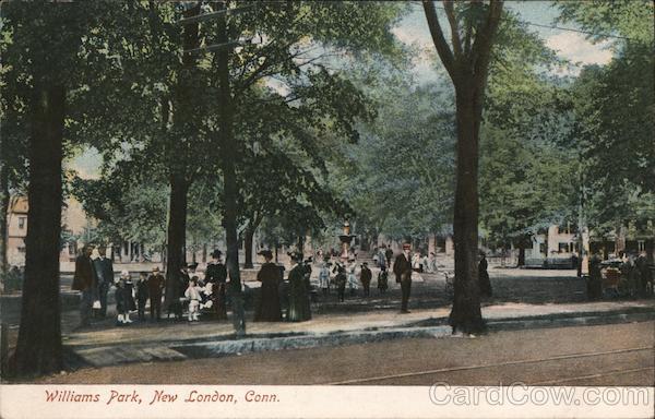 Front: TIZ Williams Park, New London, Conn. Back: (38868) Me M. No. 7917. Pub by Robbins Bros., Boston, Mass. Made in Germany. IN SPACE BELOW MAY BE WRITTEN SENDER'S NAME AND ADDRESS (NO OTHER WRITING)