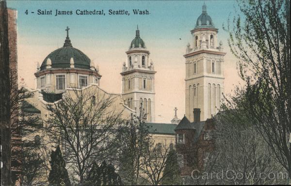 Front: 4- Saint James Cathedral, Seattle, Wash. Eff Back: Published by Rhodes Bros. 10 c Store, Seattle, Wash. Printed in Germany DOSP A.E. & I.CO, SEATTLE.
