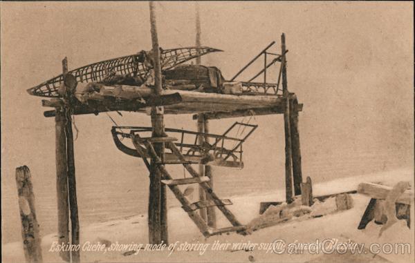 Front: Eskimo Cuche, showing mode of storing their winter supply of meats, Alaska. Back: 70509 Portland Post Card Co., Portland and Seattle. Two CENTS