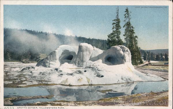 Front: 6533 GROTTO GEYSER, YELLOWSTONE PARK. COPR DETROIT PHOTOGRAPHIC CO Back: MADE ONLY BY DETROIT PUBLISHING CO. "PHOSTINT" CARD. TRADE MARK REG. U. S. PAT. OFF. THIS SPACE MAY BE USED FOR MESSAGE. AND CANADA. FOREIGN. TWO CENTS