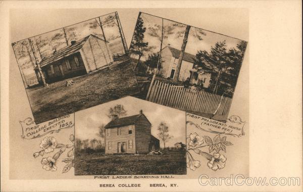 Front: COLLEGE BUILDING ERECTED 1855 FIRST FIRST PRESIDENTS HOUSE (FATHER FEE) FIRST LADIES BOARDING HALL BEREA COLLEGE BEREA, KY. Back: Pust Cards of Quality. - The Albertype Co., Brooklyn, N. Y.