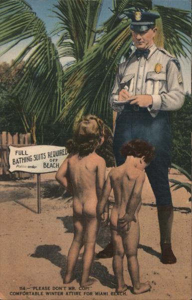 Front: FULL BATHING SUITS REQUIRED OFF Aslice order BEACH 114:-"PLEASE DON'T MR. COPI" COMFORTABLE WINTER ATTIRE FOR MIAMI BEACH. Back: PUB BY THE DADE COUNTY NEWSDEALERS SUPPLY CO., MIAMI, FLA Icow z na Reseda 43260 . THIS SPACE FOR WRITING