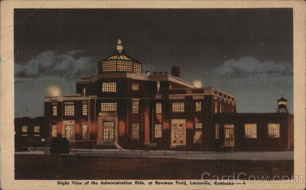 Front: Night View of the Administration Blda. at Bowman Field, Louisville, Kentucky-4 Back: Hi Fellows OLE SENT This is where FER 8 PM TA Uncle Bill land at que e Dobby t they 1497Shesile Garderober Blepaneth Miche Bile treetwels cabe untian Sed, ky