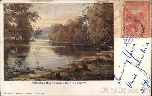 Front: TASMANIA 1d MOUNTW Australian River Scenery hath its charms SWAIN & Co., MOORE ST. SYDNEY COPYRIGHT Unnie. Back: مر) Heuri Congress 24 Rue de Pary 3 rauch