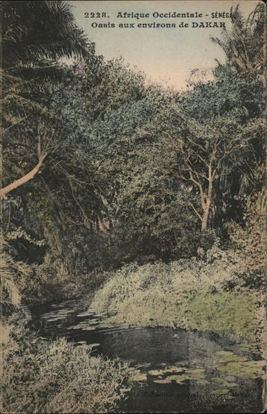 Front: 2228. Afrique Occidentale SENÉGAL Oasis aux environs de DAKAR Collection se n ale Fortien Back: va Tous les pays étrangers n'acceptent pas la correspondance au recto, se renseigner à la poste ....... .... S. 2187