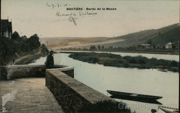 Front: leg.s. co HASTIÈRE - Bords de la Meuse Mb auice Shilain Back: Certains pays étrangers n’acceptent pas la correspondance de ce côté, se renseigner à la Poste Monsieur Henri Guignon une de Tassy Janis