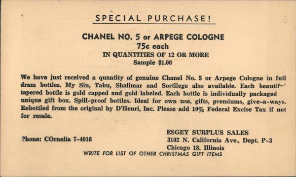 We have just received a quantity of genuine Chanel No. 5 or Arpege Cologne in full