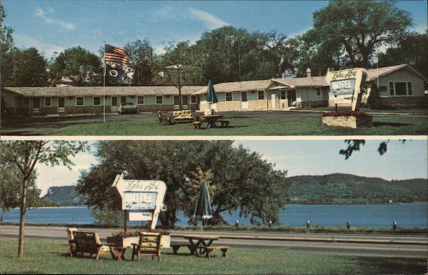10 modern units, tub and shower, TV, all air-conditioned, steam heat, telephone in all units, open all year. In the Hiawatha Valley, on beautiful Lake Pepin, near beach and boat facilities. Hunting, fishing, golfing, snowmobiling and skiing. 917 North Lakeshore Drive. Hwy. 61 & 63. |