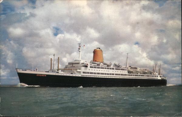 Front: **** ** *** ** ** ***** 絲 MEE 雞 ** ** m BREMEN Back: T. S. "Bremen” 32335 GRT Flagship of NORTH GERMAN LLOYD Presented without charge Printed in Germany · Foto: NGL · 150.2.61 S. N. G.L. - sailing the seven seas since 1857