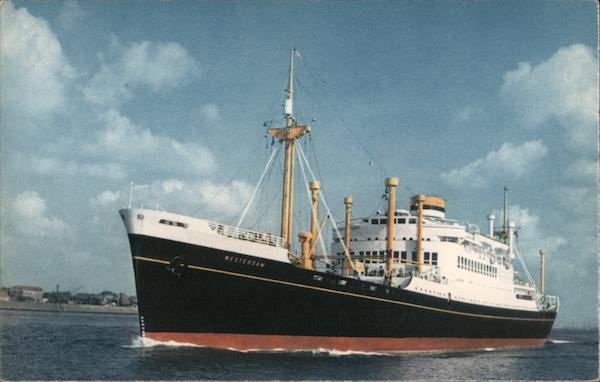 Front: ... WESTERDAM Back: KC-4 POST CARD Holland-America Line "It's good to be on a well-run ship" - Printed in The Netherlands - m.v. WESTERDAM - 12,149 Gross Reg. Tons, just after having left Rotterdam on her way to New York.