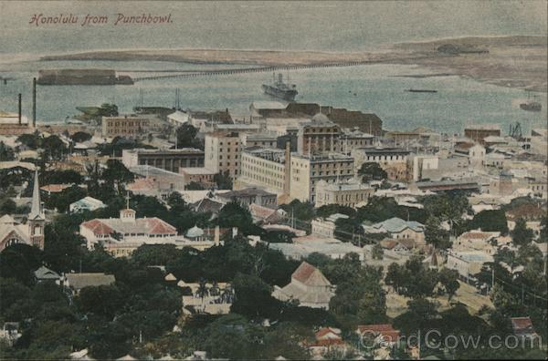 Front: Honolulu from Punchbowl. Back: No. 1. Published by H. F. Hill, Honoluiu. Printed in Germany. 08 2973*