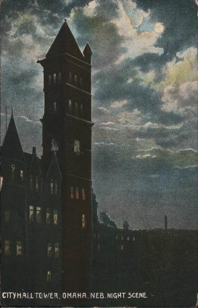 CITYHALL TOWER, OMAHA, NEB.NIGHT SCENE