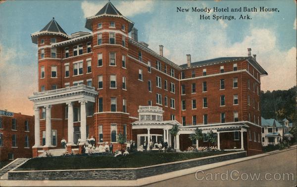 Front: New Moody Hotel and Bath House, Hot Springs, Ark. LIE emm m RE CO. Back: R-40564 PUBLISHED BY F. C. BOVING, HOT SPRINGS, ARK, с. т. P нотосHвом CH 469