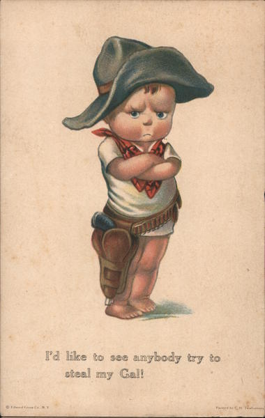 Front: I'd like to see anybody try to steal my Gal! Edward Gtoss Co., N. Y. Painted by CH Twelvetrees Back: SMILEESSENGERS COMIC No.8 CO