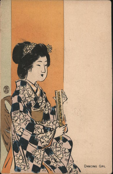Front: DANCING GIRL Back: Union Postale Universelle. PUBLISHERS KOKOKUDO. PACHIKANCHO TOKIO. ART 行發實案圖用實八十助官八橋京