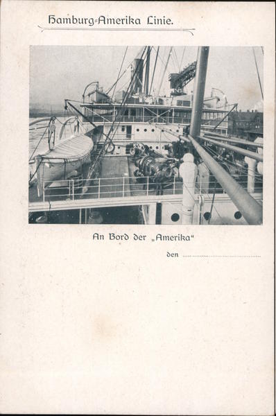 Front: Hamburg-Amerika Linie. An Bord der ,Amerika“ den ..... .... Back: Weltpoſtverein Nur für die Adreſſe