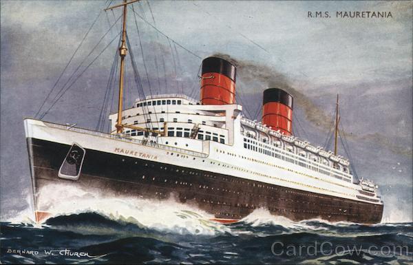 Front: R.M.S. MAURETANIA 殊 多集 务 絲 S MAURETANIA BERNARD W CHURCH Back: KC-10. SEVENOAKS. IN J 01. SALMON ENGLAND TRADE MARK PRINTED & PUBLISHED BY J. SALMON LTD. COPYRIGHT 4752
