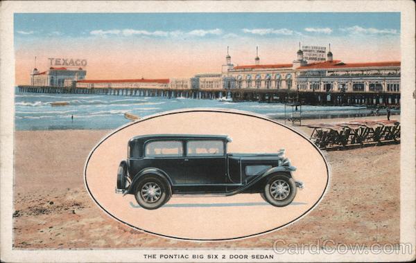Front: mpTRELATE TEXACO THE PONTIAC BIG SIX 2 DOOR SEDAN Back: 1996 N OAKLAND - PONTIAC SIXES Exhibition of General Motors Products ATLANTIC CITY, N. J. ONE CEN TO ANYWHERE IN US. VIA AIRMAIL Co. E. G. KROPP 00., MILWAUKEE