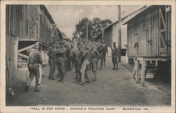 Front: "FALL IN FOR CHOW", MARINE'S TRAINING CAMP. QUANTICO, VA. Back: 10 Published by W. B. Garrison, Inc., Washington, D. C.