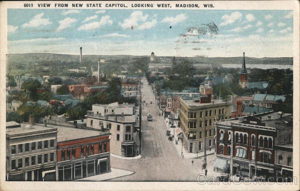 6013 VIEW FROM NEW STATE CAPITOL, LOOKING WEST, MADISON, WIS.