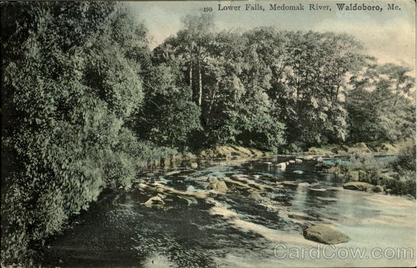 Front: 190 Lower Falls, Medomak River, Waldoboro, Me. Back: NER 11 AM 1907 Message may be written on this Side. N.H 50 PAB UNITED STATES OF 1706 FRANKLIN 1790 Published by W. G. Labe, Waldoboro, Me. mis lebas. J. Smitty Mt. Vernon New Hamps RN