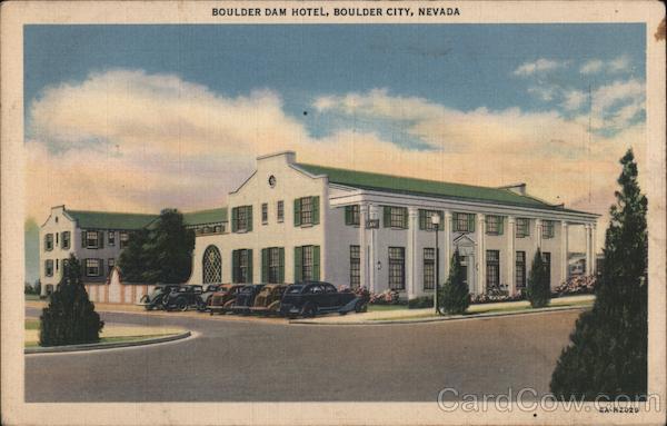 | Boulder Dam Hotel, located in the heart of charming government-designed and built Boulder City, is completely modern with 86 rooms all with tub or shower baths and completely air conditioned throughout. Dining Room in connection and headquarters for Grand Canyon-Boulder Dam Tours, Inc. |