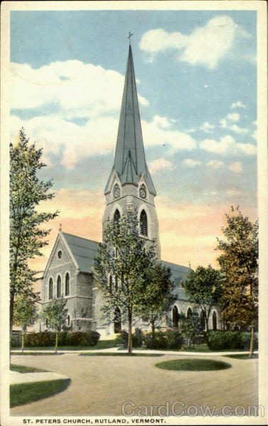 Front: ST. PETERS CHURCH, RUTLAND, VERMONT. Back: PUBLISHED BY CHAS. W. HUGHES, MECHANICVILLE, N. Y. STAR QUALITY FOR WRITING MESSAGES R-63443 60 THIS SPACE FOR ADDRESS ONLY.