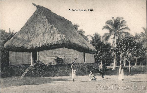 Front: Chief's house, Fiji. Back: STAMP. This Space o be used for THE ADRRESS ONLY TO BE Stab. Deutsche Erfindungen - Milano. Published by Morris, Hedstrom & Co., Levuka, Fiji.