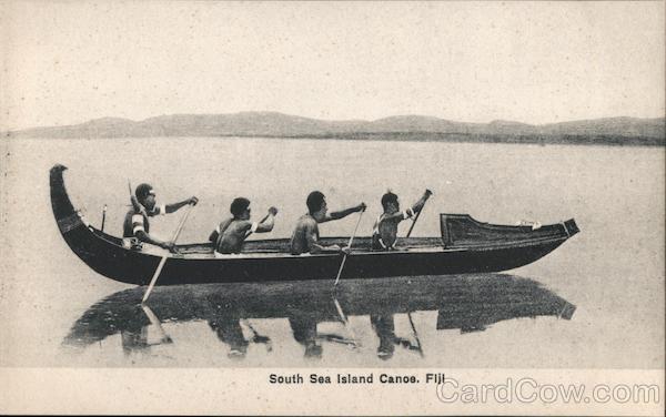 Front: South Sea Island Canoe. Fiji Back: STAMP. This Space o be used for Correspondence. THE ADRRESS ONLY TO BE Stab Deutsche Erfindungen - Milano. Published by Robbie and Company Ltd., General Marchants, Levuka, Fiji. Om va