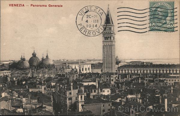 Front: VENEZIA - Panorama Generale LIANE ENEZA STE 2C-21 4 111 1914 ERROV 15 RCENTESIMAIS Back: tan Care Mons. Henri Guignon 25 Rue rl Manakh Dahill. CS Yout Africa 2874 - 28