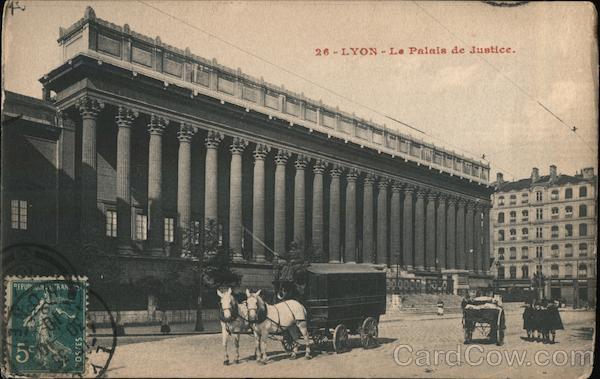 Front: 26 LYON Le Palais de Justice. wwS PRIMEURS REPUP TRAN ARRIVEE TBMOINS LEGO POSSES Back: Red GARTE POSTALE Pack Tous les pays étrangers n'acceptent pas la correspondance au recto (se renseigner à la poste) 27 We yeah tvory Holloway rin Pondres