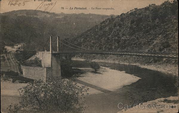 Front: 14805 75 Le Pertuiset. - Le Pont suspendu. Coraoussea Back: Certains Pays Etrangers n'acceptant pas la Correspondance de ce côté, se renseigner à la Poste. ellentein Heralquignon 26 rue de Party Taris