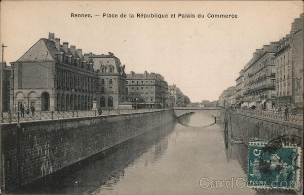 Front: Rennes. Place de la République et Palais du Commerce POSTES eries Modernes REPUBIQUE FRANÇAISE Back: ( Correspondance ) ( Adresse du Destinataire)