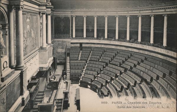Front: 989. PARIS Chambre des Députés Salle des Séances E L. D. Back: Tous les pays étrangers n'acceptent pas la correspondance au recto, se renseigner à la Poste.