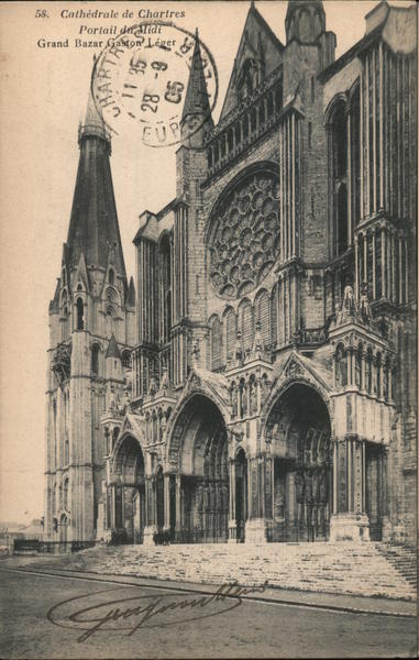 Front: 58. Cathédrale de Chartres Portail der lidi Grand Bazar Gaston Léger 6-88 Back: - CARTE POSTALE... Certains pays etrangers n'acceptant pas la correspondance de ce coté se renseigner à la Poste A. Bourdier, imp.-édit., Versailles