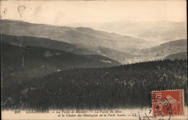 Front: GERARDMER. – La Vallée de Munster. – La Vallée du Rhin et la Chaine des Montagnes de la Forét Noire. 208 LL.S PC ES -- REPUBLIQUE FRANCAISE Back: AEMON good and best pou holide Quiouon salutation friend an li Remiren in Esphate Le Carre