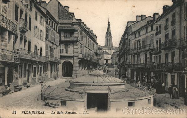Front: OIEFEUR 24 PLOMBIÈRES. – Le Bain Romain. - LL. Back: I REPUBLIQUE FRANCAISE REPUBLIQUF – FRANÇAISET AIS POSTES POSTES AERES DRESSE poubica s 13 Wourieur salut Heuri Guignon :5 Rue El Wanakl VN NORD Song Egypte Le Caire