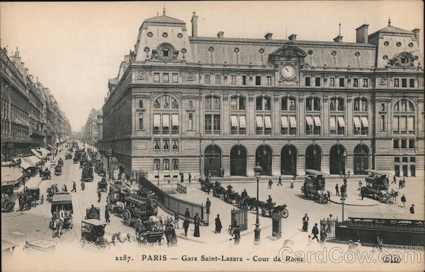 Front: RIVAE 2287. PARIS Gare Saint-Lazare Cour de Rome Back: Tons les pays étrangers n'acceptent pas la correspondance au recto, se renseigner à la poste.